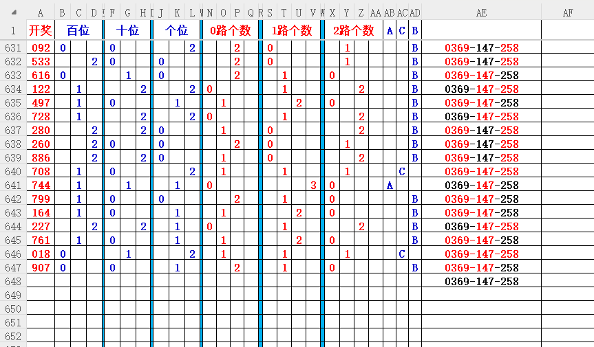 如上图2,012路分析01路尾走比较好,关注0369147尾;
