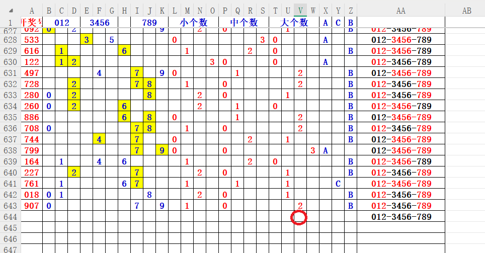 如上图56,大中小分析,中号3456出胆码,最低1个胆码,重点34