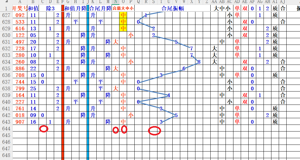 升降平:升就是本期和值大小比上期和值大小大,小于就是降,如果一样就是平,和尾也是一样。