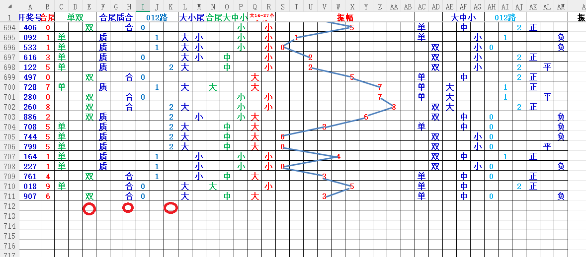 如上图56,012路分析。0369路号出胆,039中出,重点39胆码