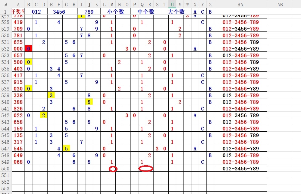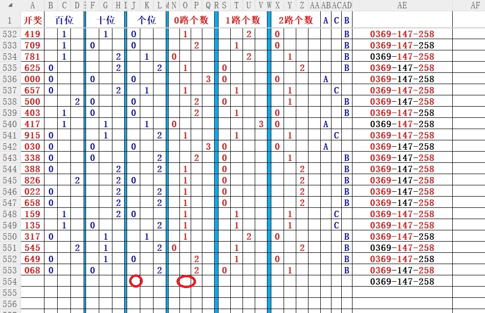 如上图2,012路分析01路尾走比较好,关注0369147尾;