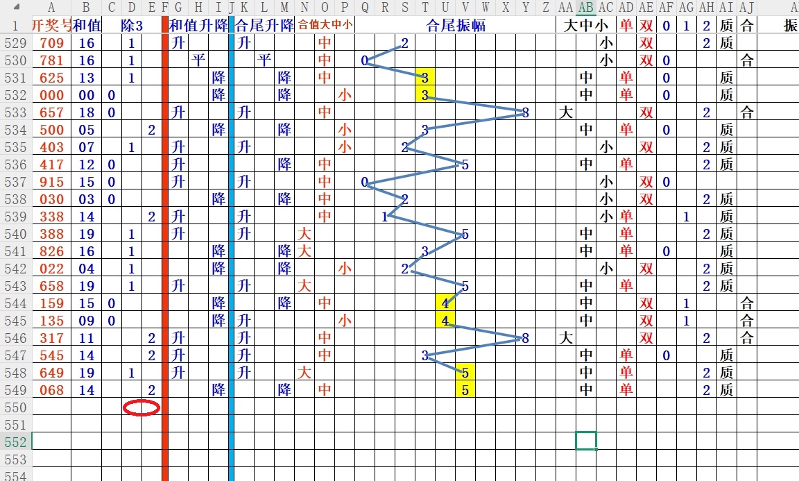 和尾:开奖号码和值的个位数,范围为0-9。示例:和值15的和尾为5。