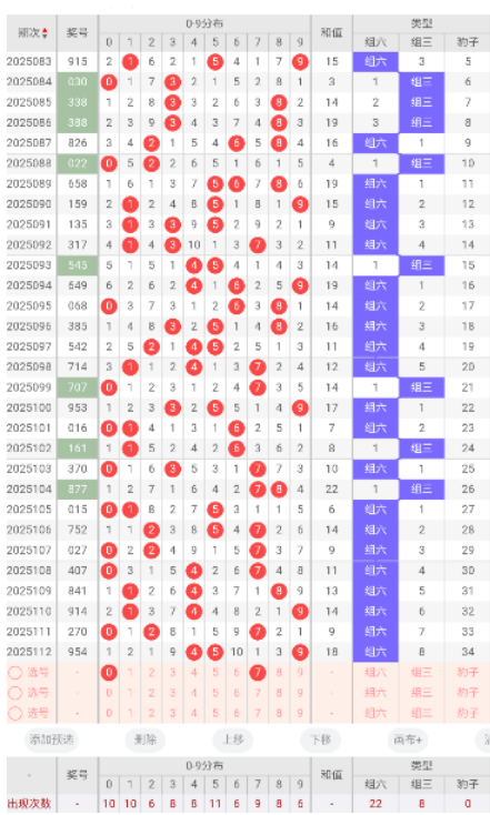 上期简单回顾:上期开954,重复上期0码,1小2大,2奇1偶,跨度5,和值18,