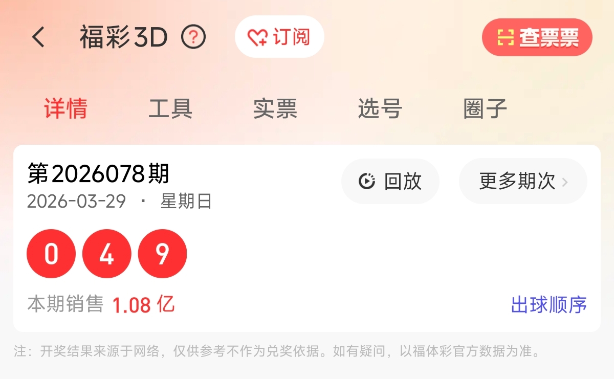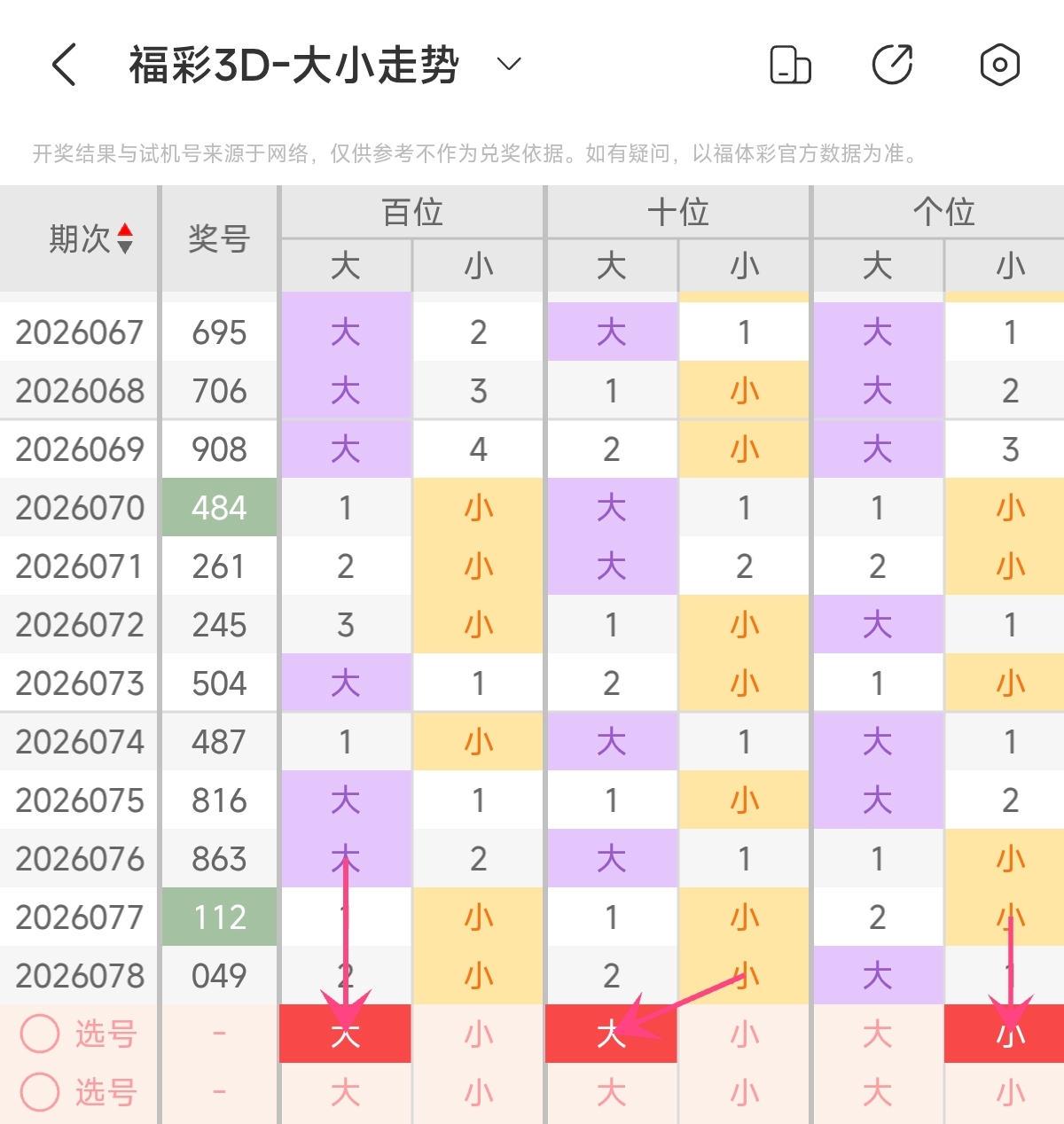 首先让我们回顾一下上期福彩3D第2026078期开奖号码为049,为组六形态,大小比为1:2,奇偶比为1:2,跨度为9,和值为13。