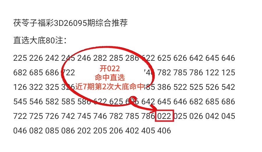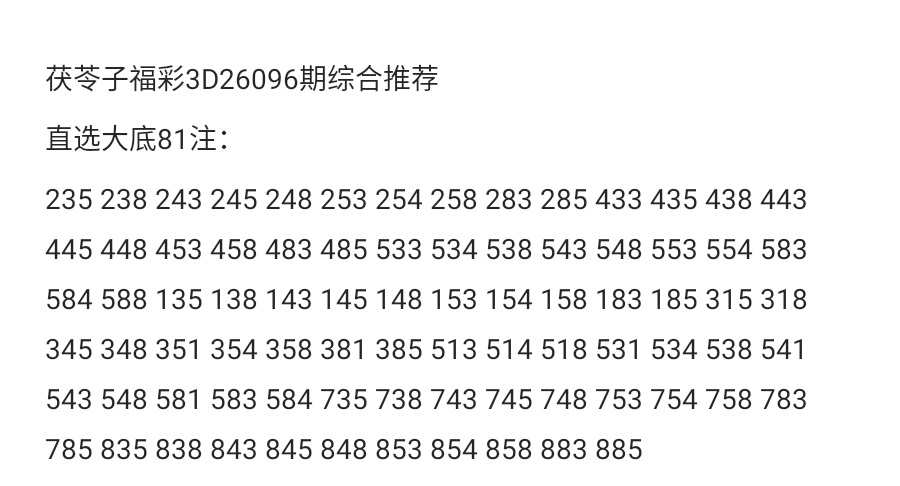 茯苓子福彩3D26096期综合分析,上期绝3码全对,大底直选命中