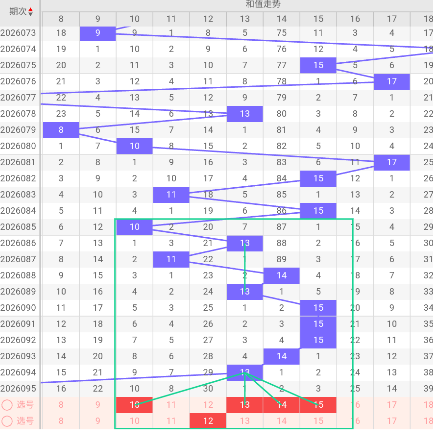 和值推荐:10、12、13、14、15