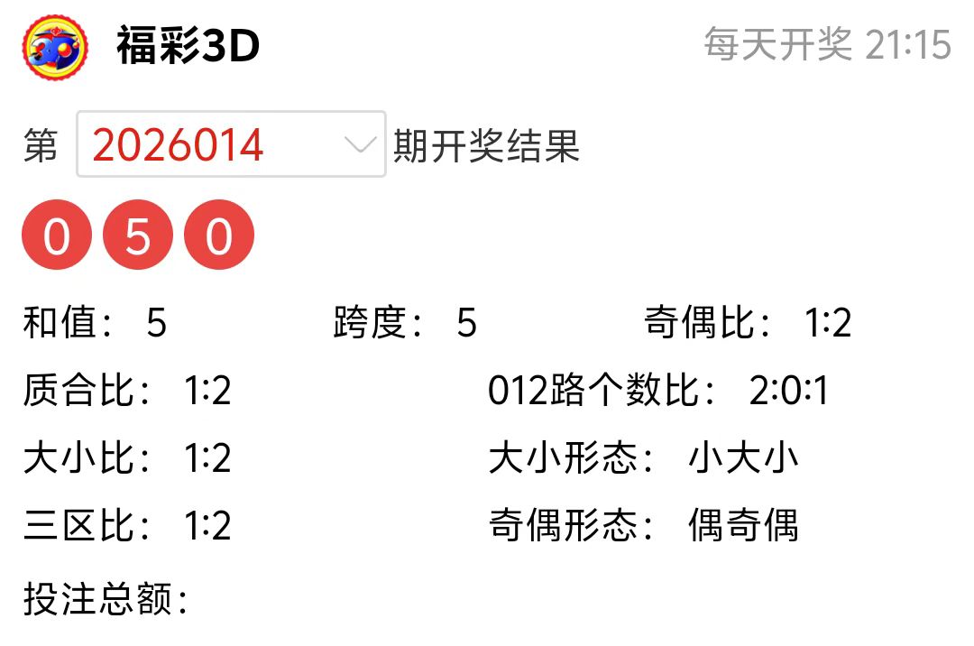 各位友友们大家好,我是博学说彩!每期给大家分享关于数字彩的我个人分析,常言道“命里有时终须有”,个人见解仅供参考!本文给大家分享的是福彩3D第2026015期开奖号码个人分析,若觉得有用请记得关注哦!