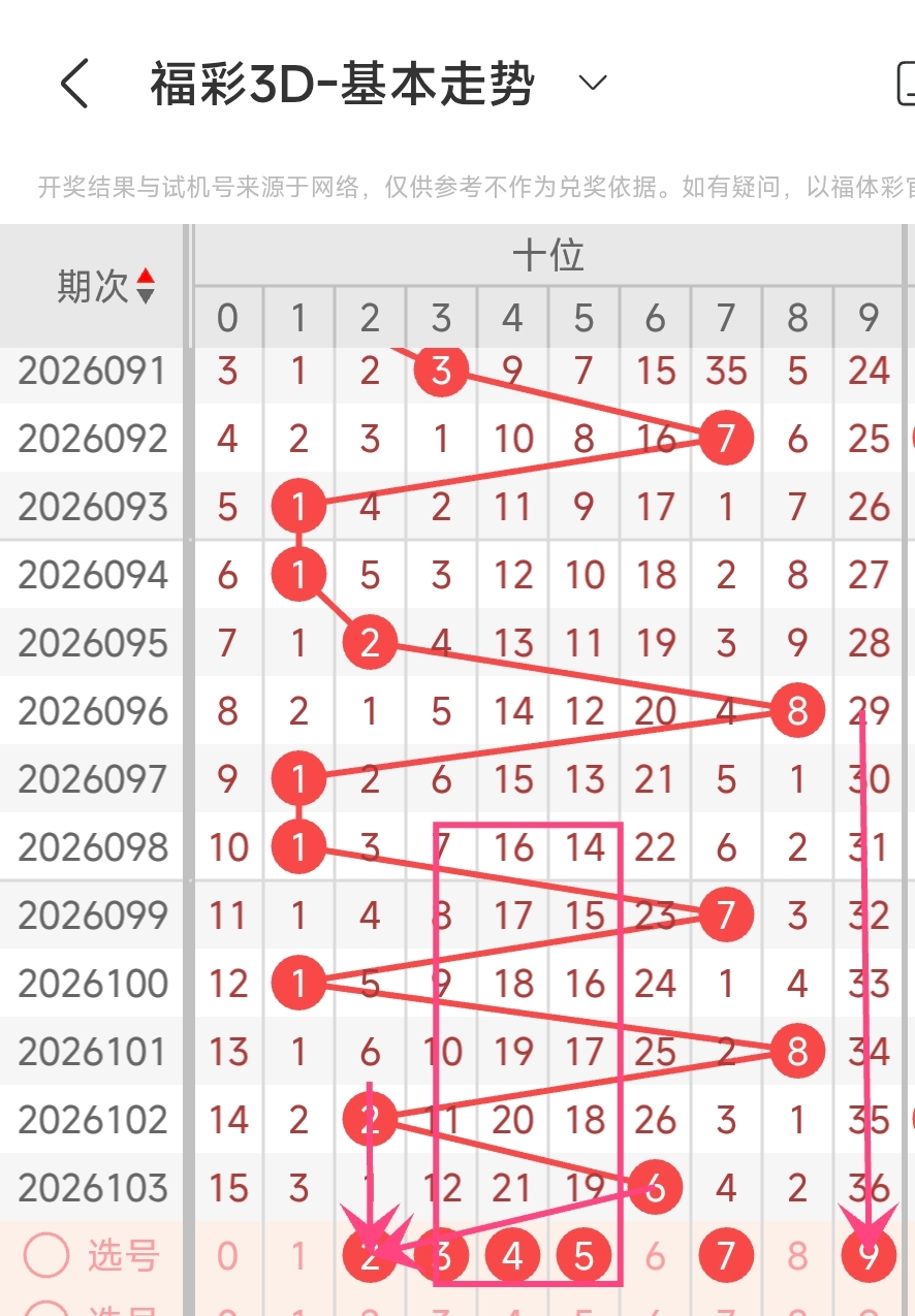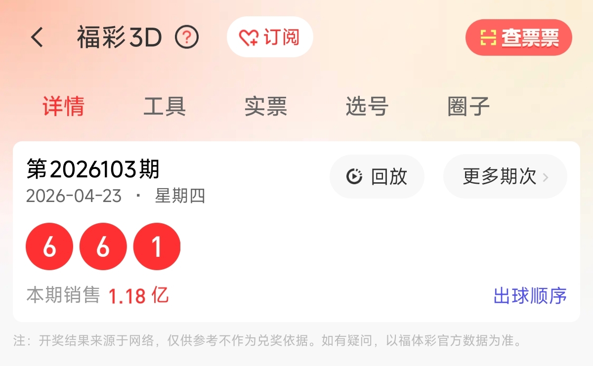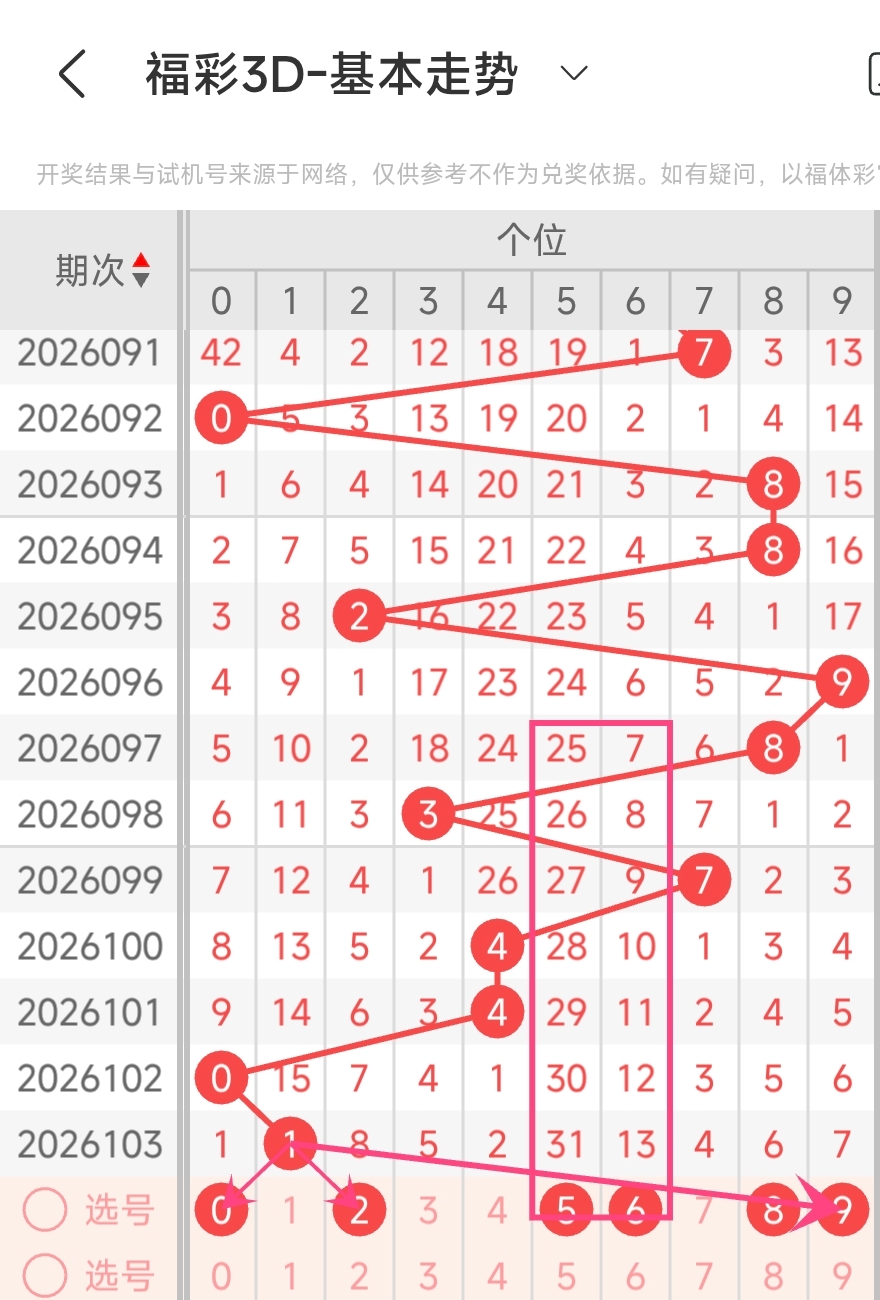 首先让我们回顾一下上期福彩3D第20260103期开奖号码为661,为组三形态,大小比为2:1,奇偶比为1:2,跨度为5,和值为13。