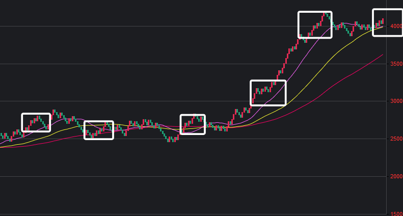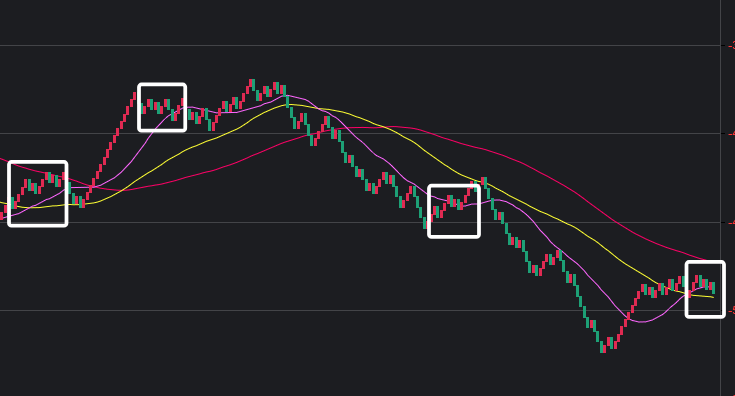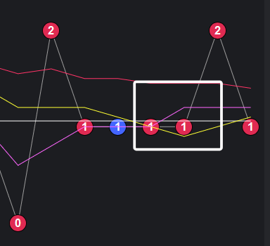 可以看到一些规律,在粉框中,如果一致,那么接下来这些跨度也会出。