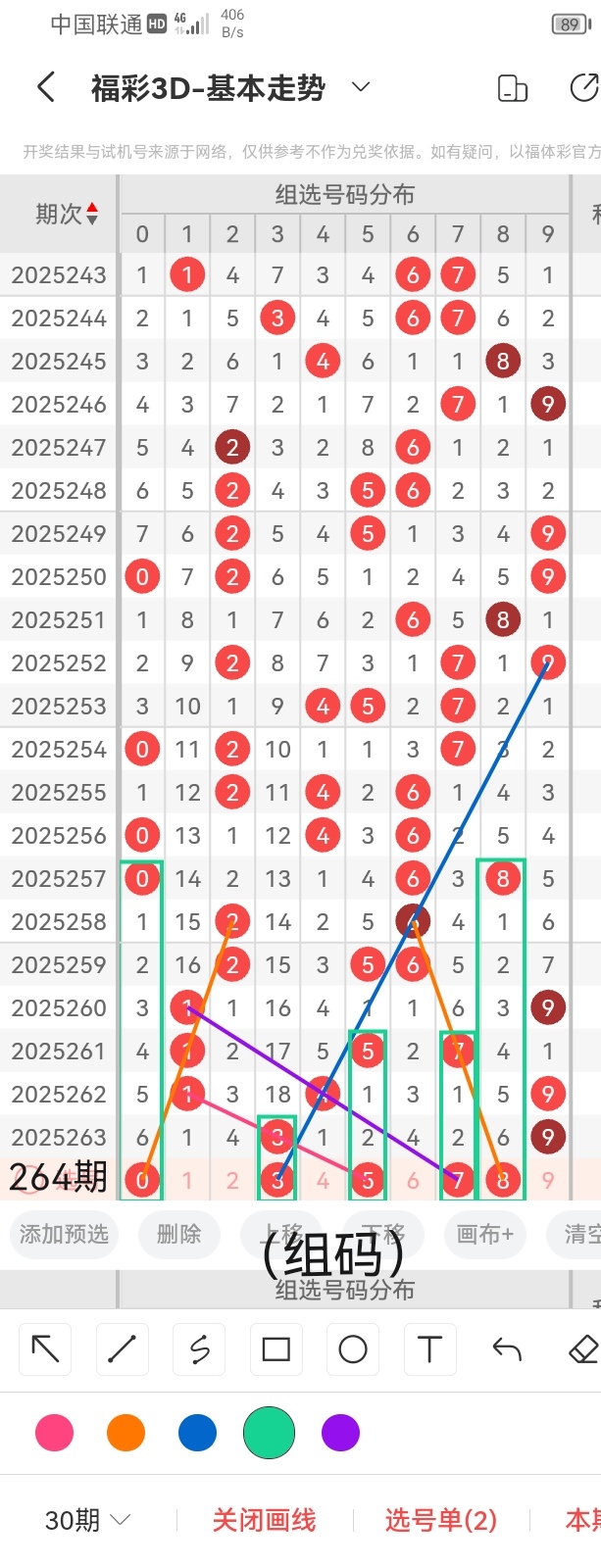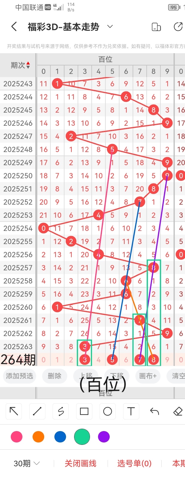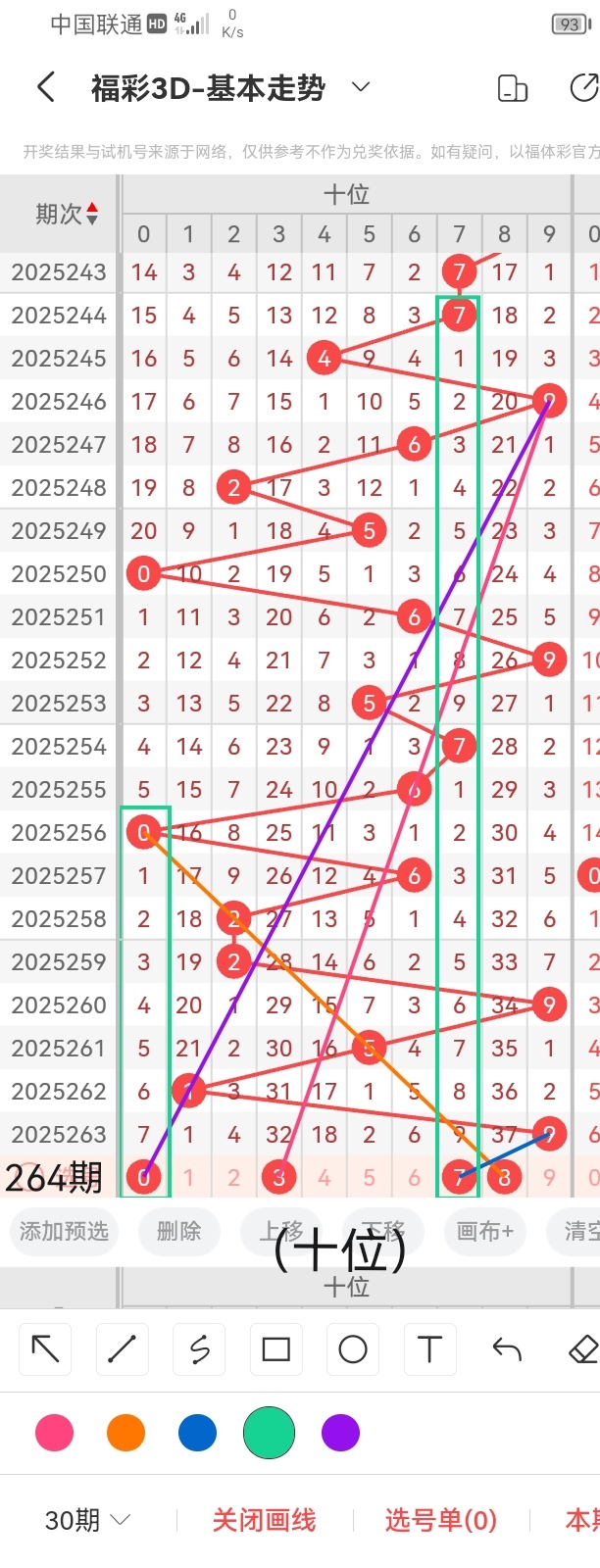 通过以上对上期的简单回顾,下面进入2025264期(下面简称本期)的选号分析: