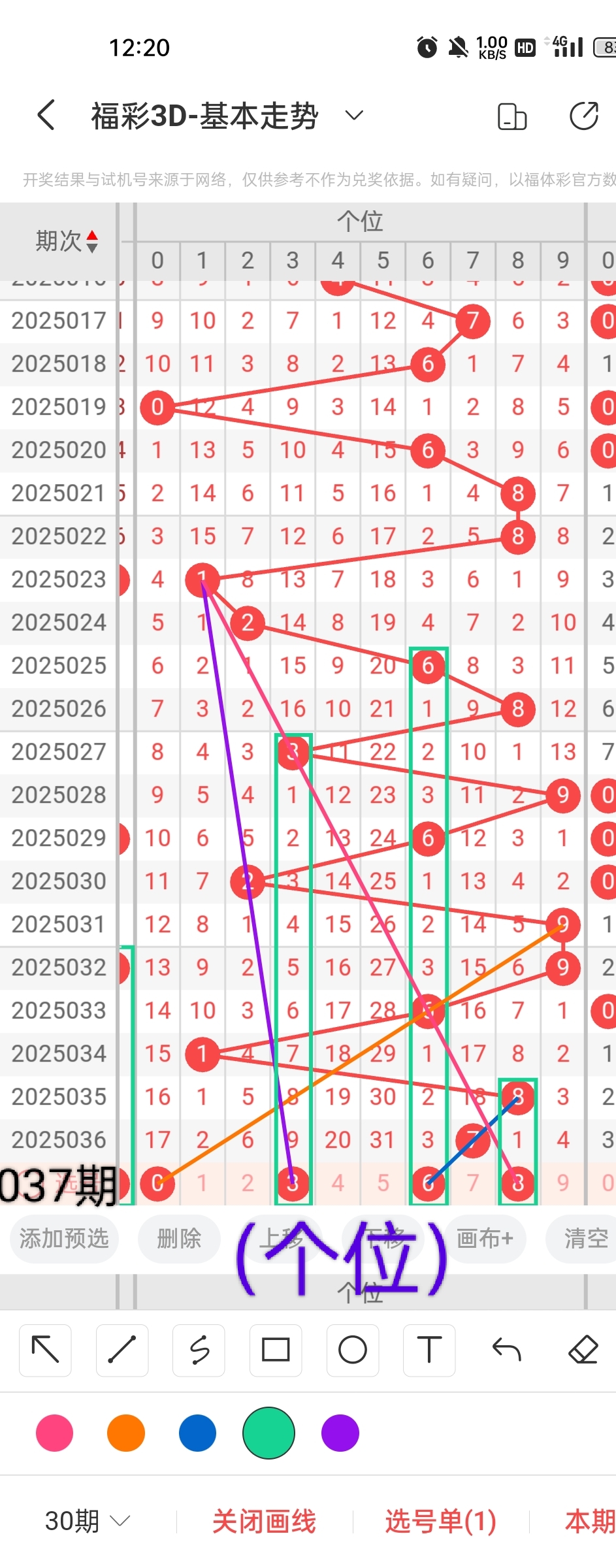 通过以上对上期的简单回顾,下面进入2025037期(下面简称本期)的选号分析: