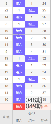 上期形态:组六,近10期的形态分别为:组六,组六,组六,组三,组六,组六,组三,组六,组六,组六,近期组三和组六的形态比较规律性,根据以往形态规律,本期个人认为需要重点关注组六落位,同时也需要防组三形态的开出。