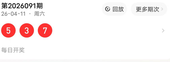 2026091期开奖号码为537,奇偶值为3奇;大小值为2大1小;012路走势为012路;跨度为4跨;和值15点;组六形态。