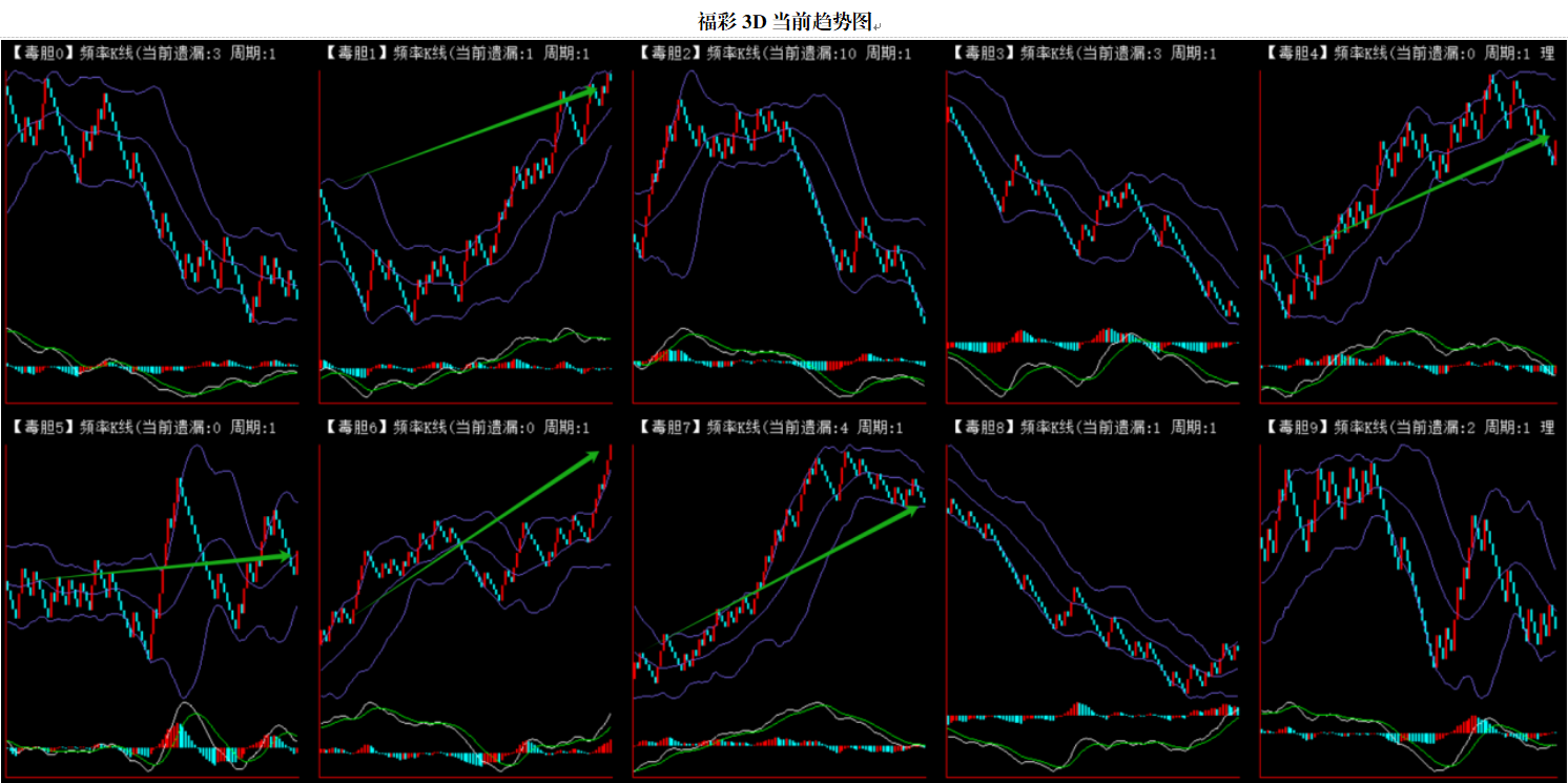 整体趋势上行,上边沿线趋势向上,下边沿趋势也是向上,节点震荡,当前连开10期,本期关注。