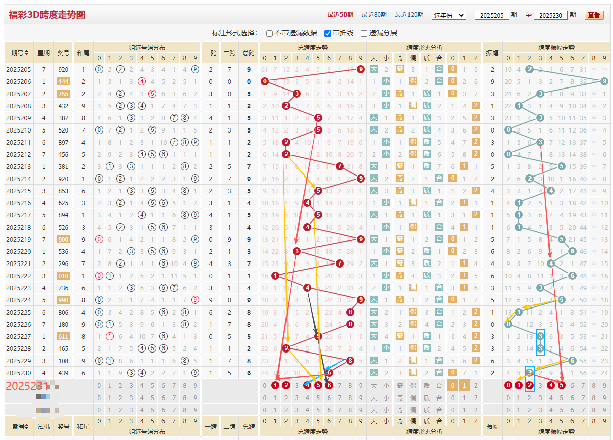 最近看到好多人只看推荐的数字号码,实际像分析的内容也可以参考的,用 和值 跨度 ,用7码配号 。