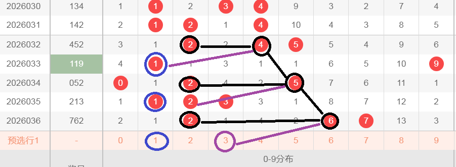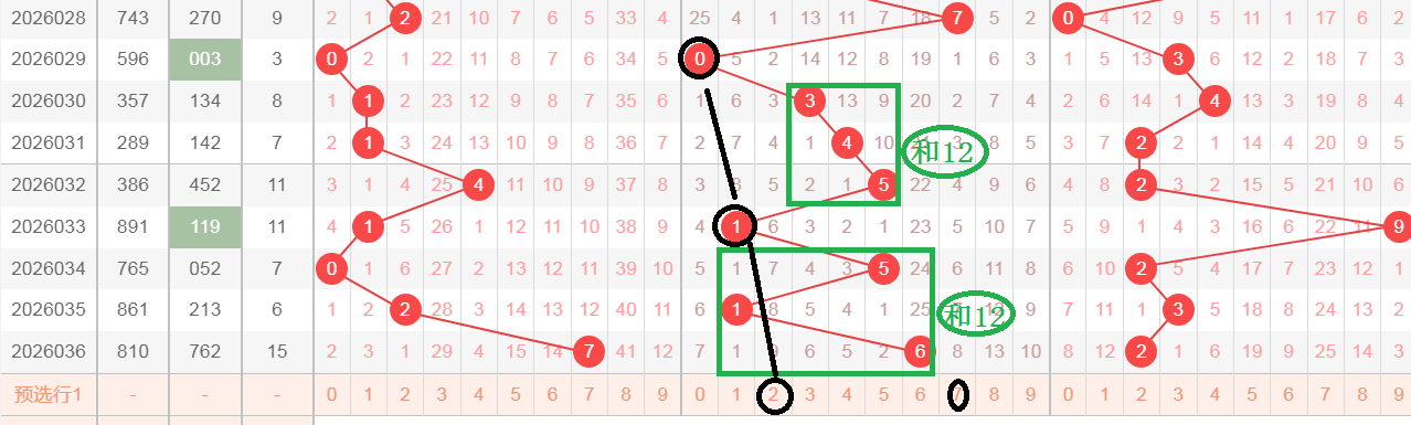 这是一张十位的大盘走势分析图,第一次黑颜色0的下三期开出了绿颜色框345,345这三个数字相加等于12,然后开出黑颜色1,黑颜色1的下三期开出绿颜色框516,这个516三个数字相加同样也等于12,那么轮到今天会不会开出黑颜色2,形成黑颜色012的顺子,但是有的时候不给开2,开2的对应数7,文字表达可能不太清楚,大家可以观看上面的视频