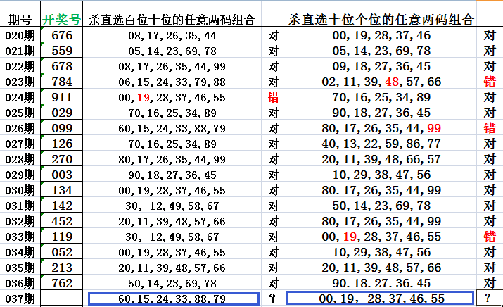 杀两码组合,上期正确