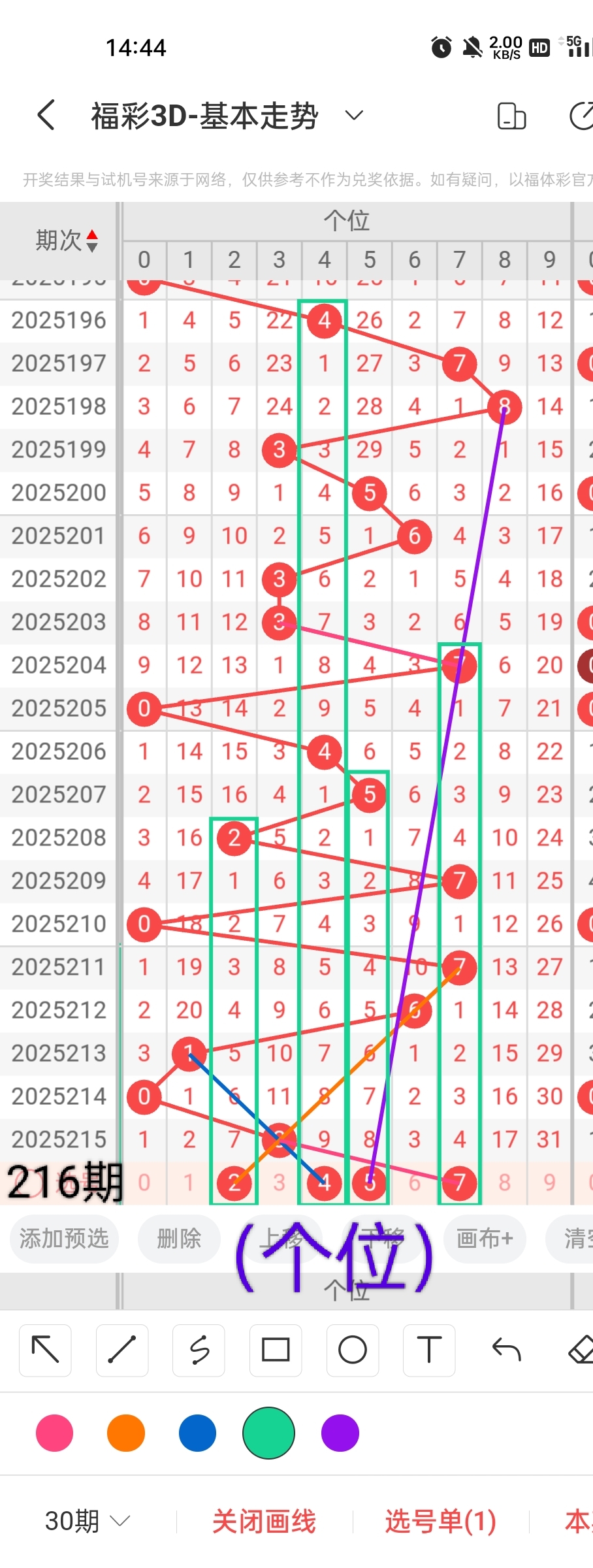通过以上对上期的简单回顾,下面进入2025216期(下面简称本期)的选号分析: