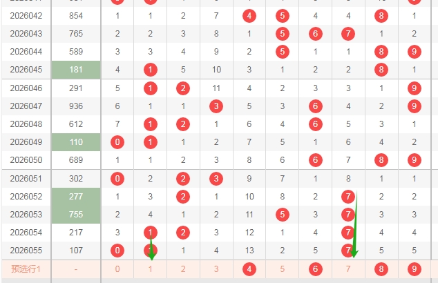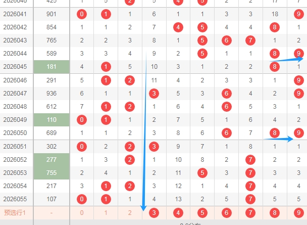 上图是福彩3D开奖号码和值尾数走势图,我在上面走势图中标注出来的数字是4尾数,到本期为止4尾数和值遗漏了57期,所以本期或者近期还是得留意和值4尾数。
