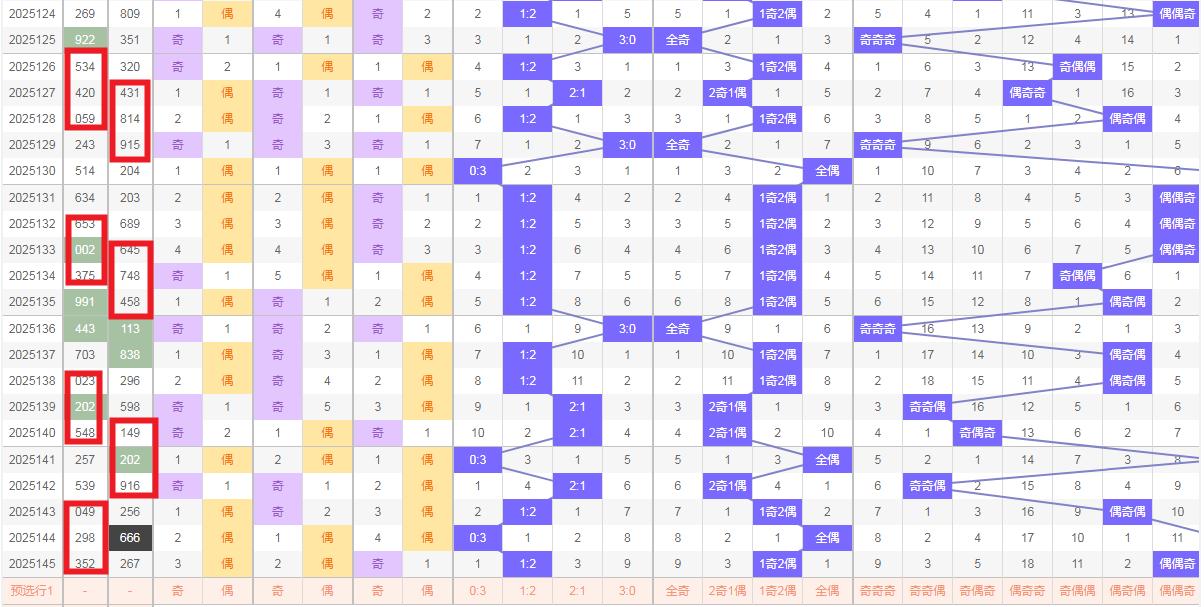 奇偶比例分析 - 奇偶比:上期号码267为偶偶偶形态,奇偶比例为1:2。结合历史数据与近期走势特征,本期可继续倾向于奇偶比为2:1的组合,即预测两位奇数搭配一位偶数。
