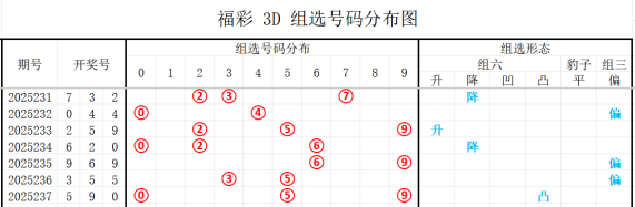 通过对走势的综合判断,现对福彩3D 2025238期分析如下: