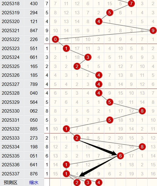 上期和尾为1,近5期和尾开出情况:第25333期开出2,属于偶数,2路号码,火属性;第25334期开出8,属于偶数,2路号码,木属性;第25335期开出6,属于偶数,0路号码,水属性;第25336期开出1,属于奇数,1路号码,水属性;第25337期开出1,属于奇数,1路号码,水属性;