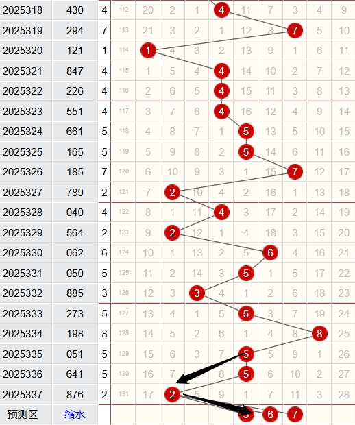 上期跨度为2,近5期跨度开出情况:第25333期开出5,属于奇数,2路号码,土属性;第25334期开出8,属于偶数,2路号码,木属性;第25335期开出5,属于奇数,2路号码,土属性;第25336期开出5,属于奇数,2路号码,土属性;第25337期开出2,属于偶数,2路号码,火属性;