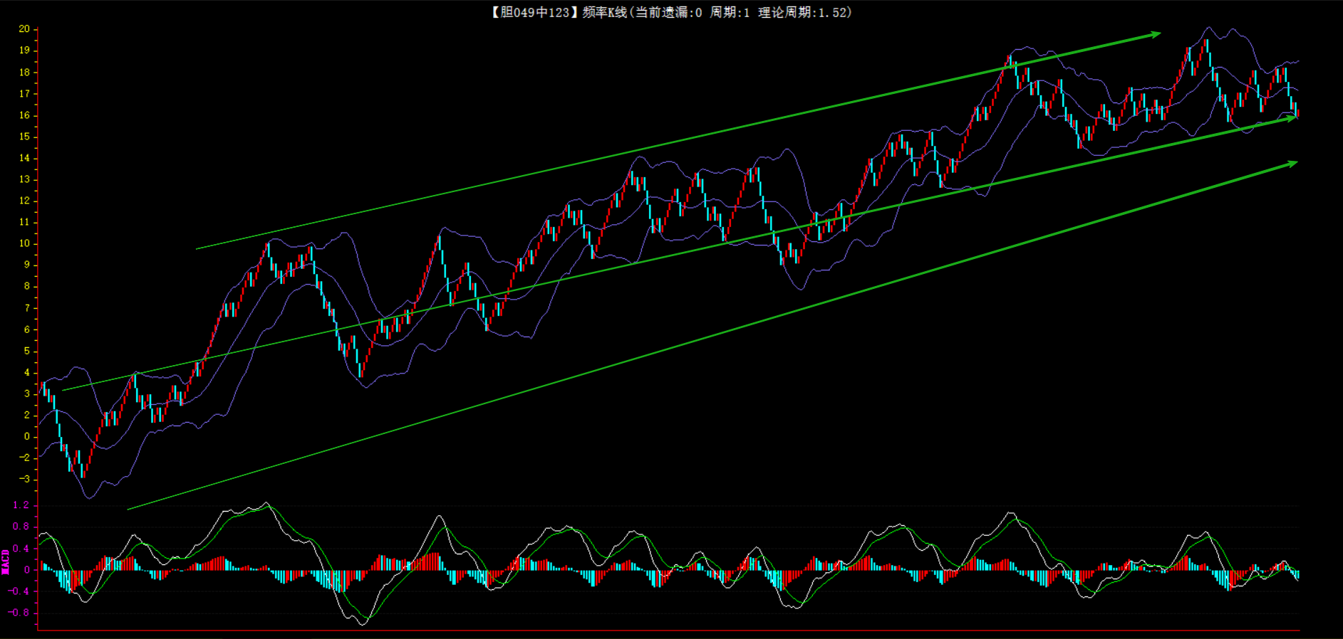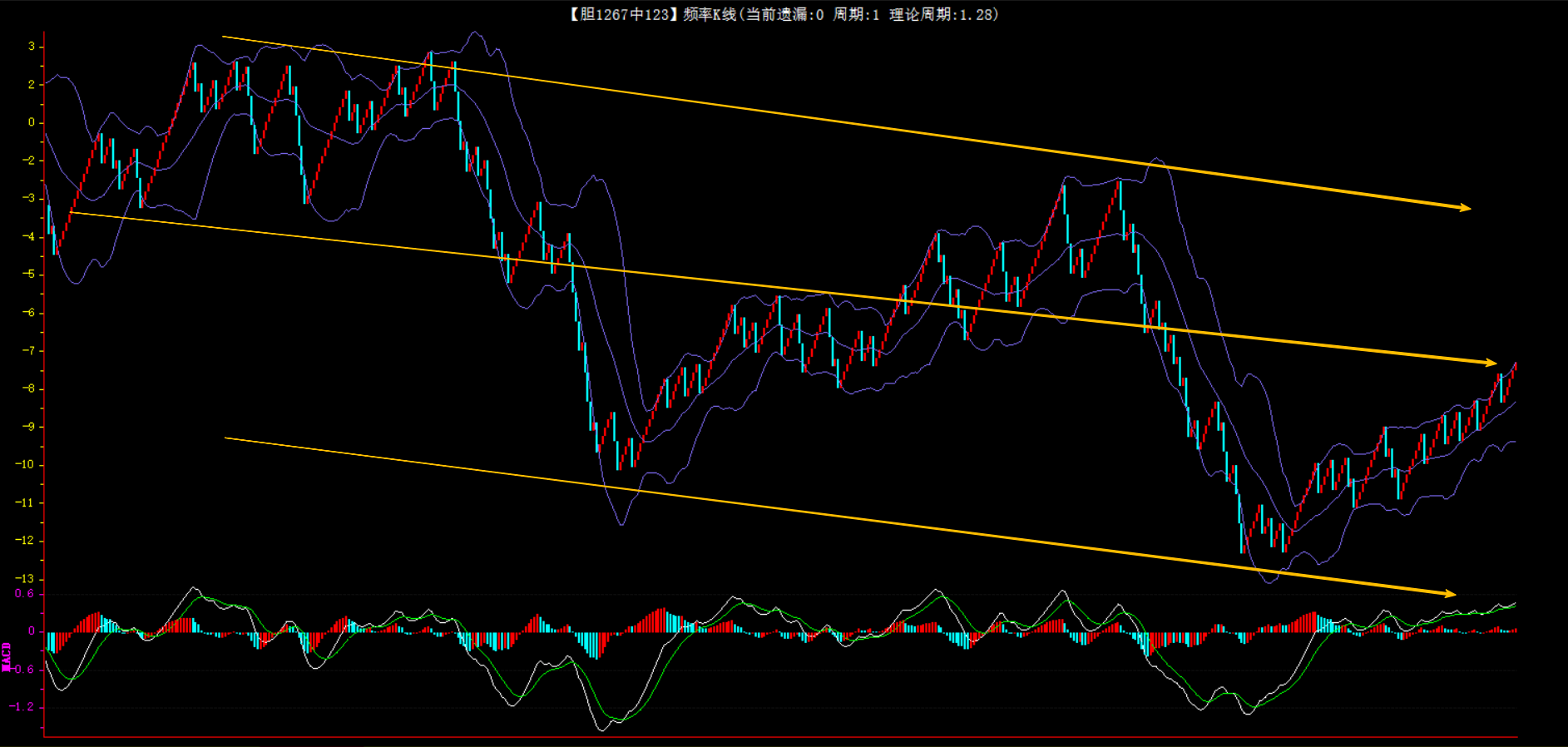 整体趋势上行,上边沿线趋势向上,下边沿趋势也是向上,节点震荡,当前开1期,本期关注。
