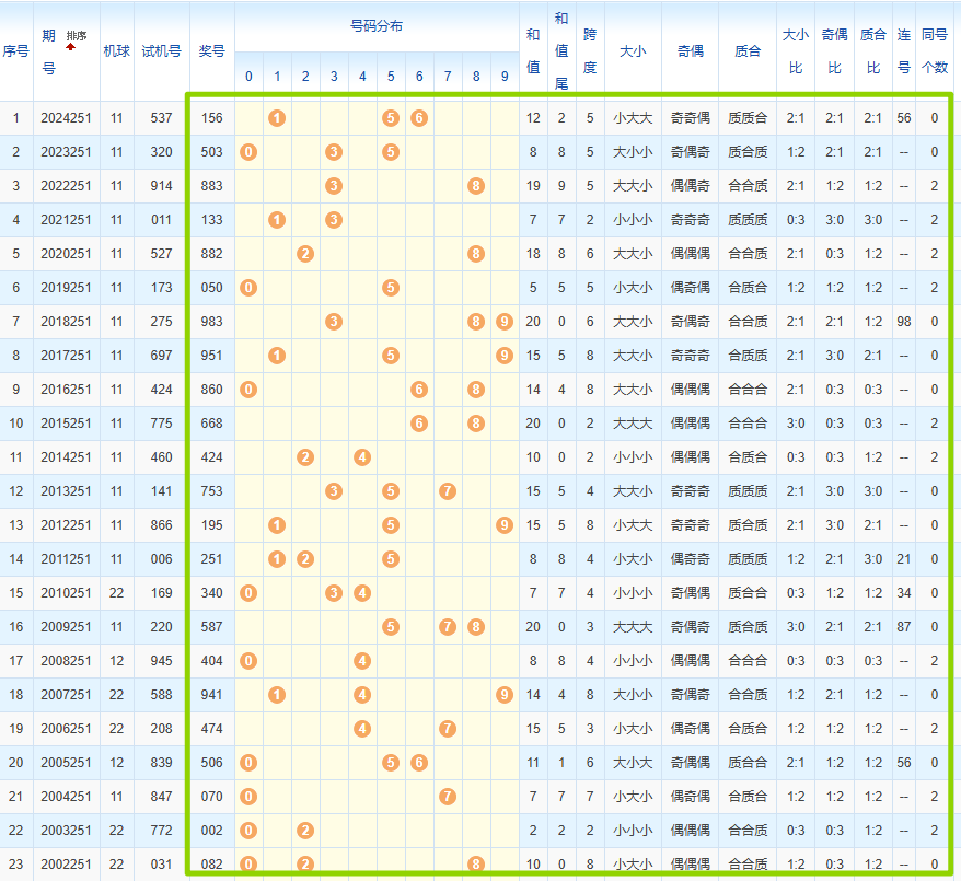 1、统计往年同期开奖号码