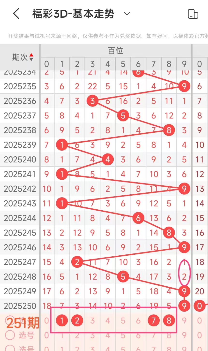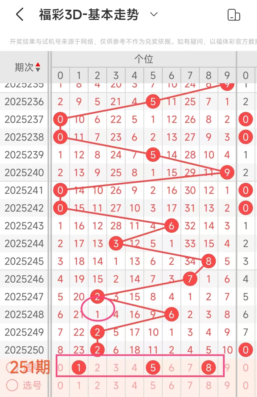3、当个位开出2后下期开出:437217462,经统计0号出0次、1号出现1次、2号出现2次、3号出现1次、4号出现2次、5号出现0次、6号出现1次、7号出现2次、8号出现0次、9号出现0次。观察发现247号出现靠前优先选。