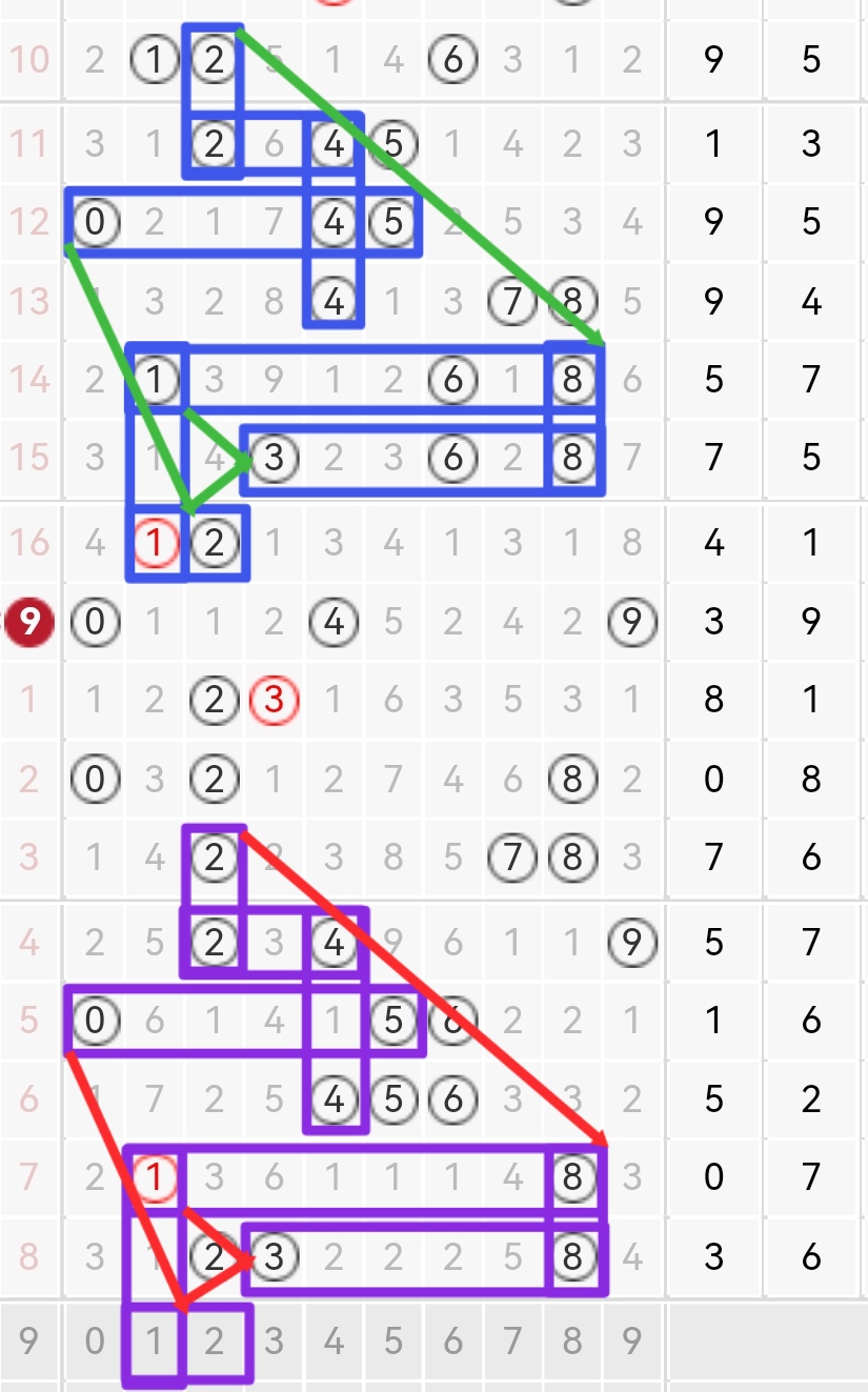蓝色图:2落2给24组合差2,24组合落05对码组合落4,落8开18组在落38对码组合在开112时候18组合1落下来开全小组三,紫色图:2落2给24组合差2,24组合落05对码组合落4,落8开18组在落38对码组合,使用蓝色图判断紫色图087期落12胆码方向形态分析组三