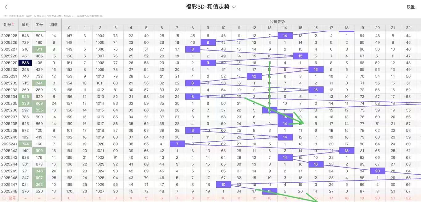 2025249期福彩3D和值走势图如下: