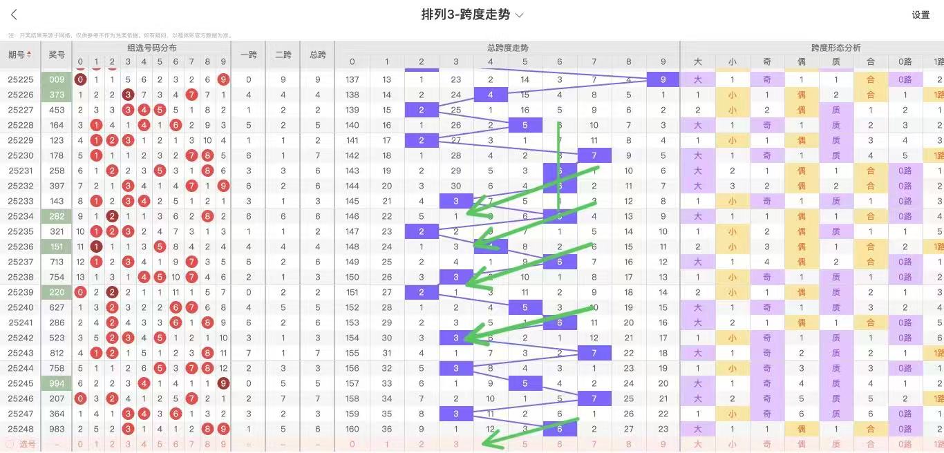 根据走势对跨度观察统计得到以下分析结果: