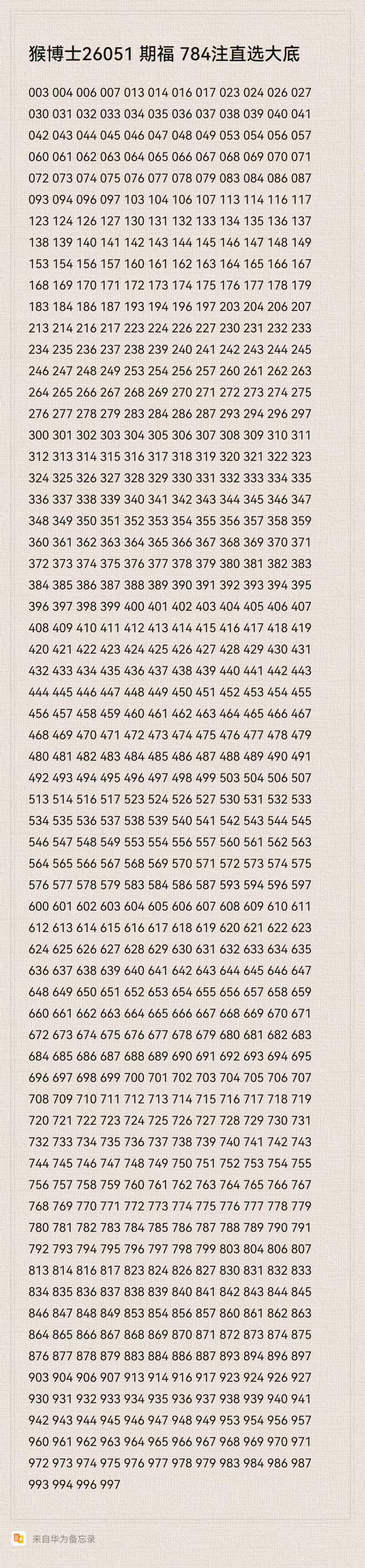 猴博士26051期福784注直选大底:(可以当母底用,然后进行缩水)