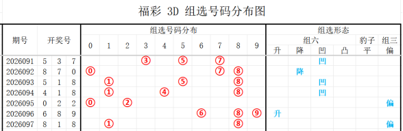 通过对走势的综合判断,现对福彩3D 2026098期分析如下: