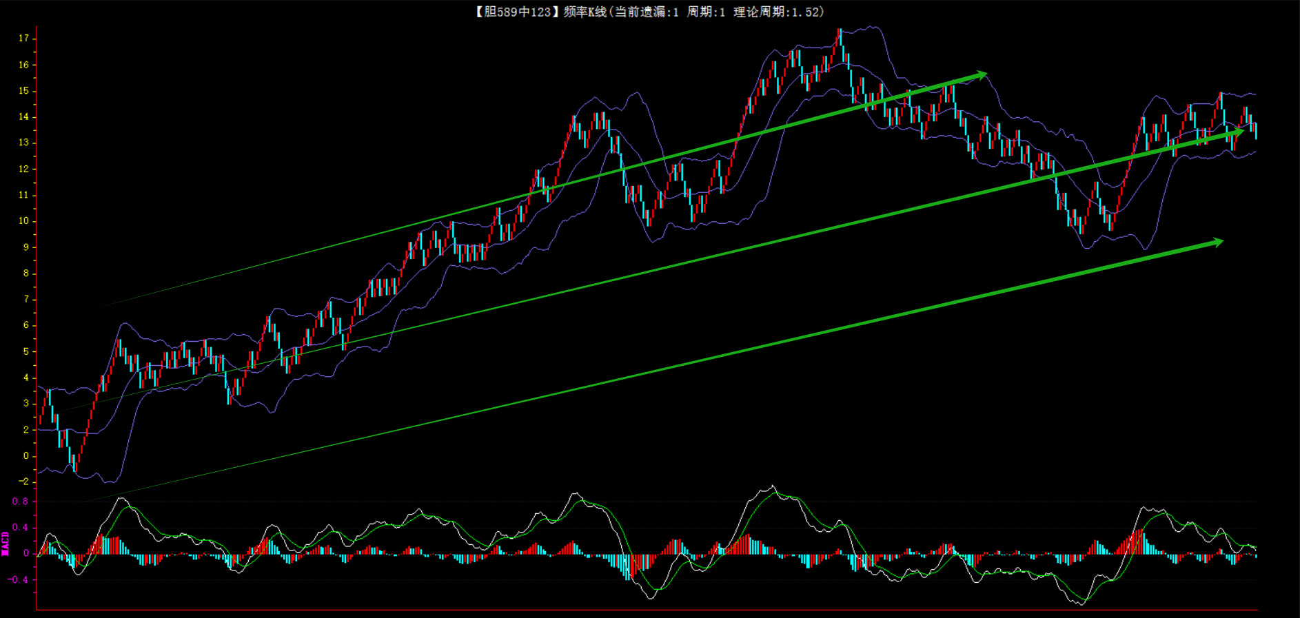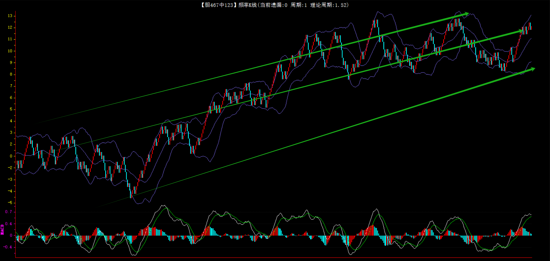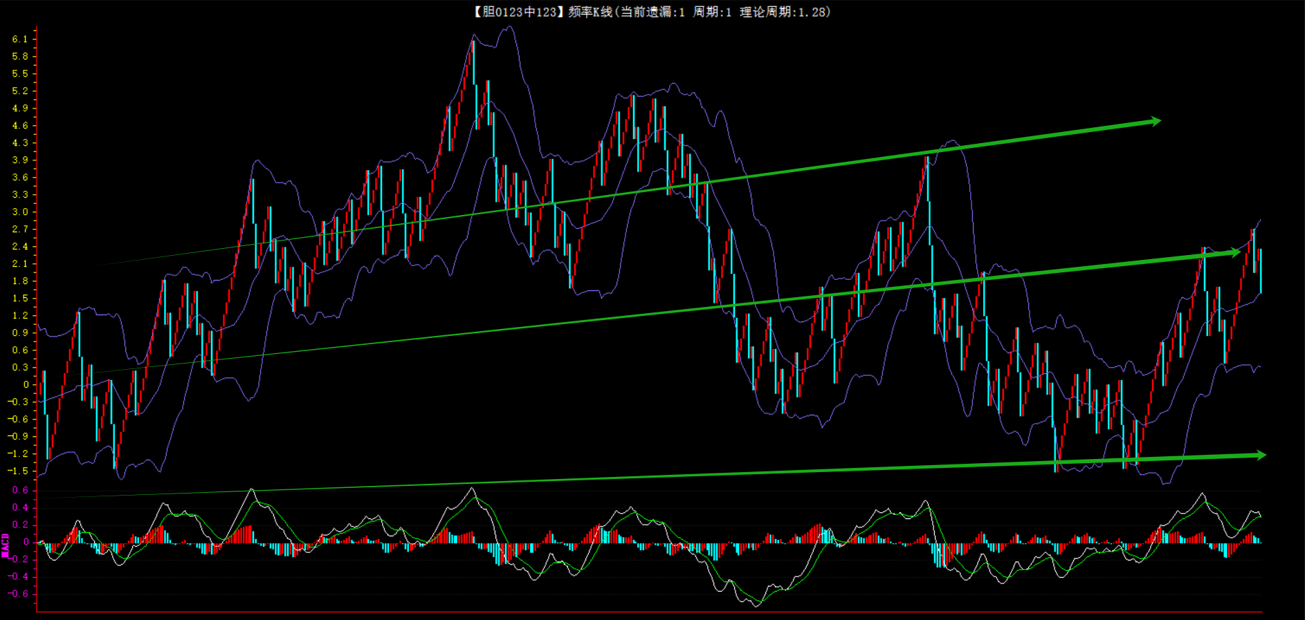 整体趋势上行,上边沿线趋势向上,下边沿趋势也是向上,节点震荡,当前开1期,本期关注。