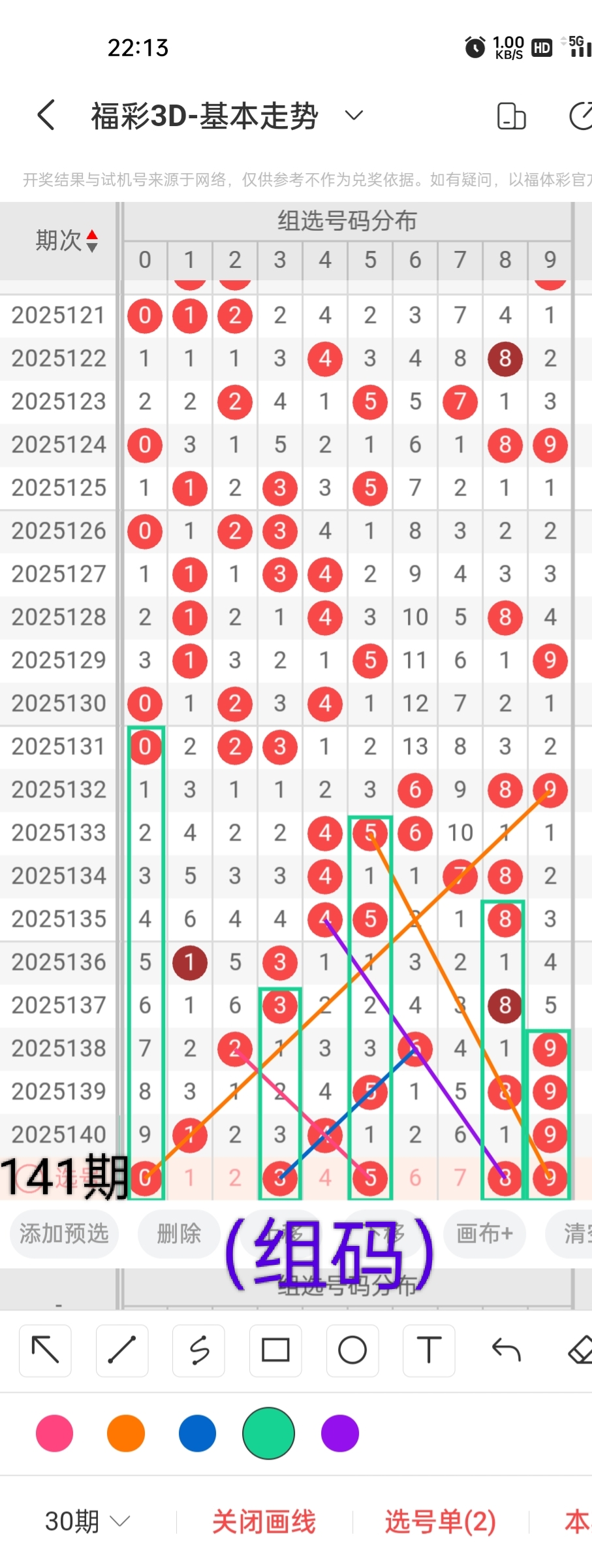 通过以上对上期的简单回顾,下面进入2025141期(下面简称本期)的选号分析: