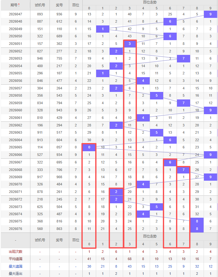 上期百位:8,近10期百位出号:9 6 7 9 4 2 2 5 4 8 8。最近10期大小变化分别:大大大大小小大小大大,奇偶变化分别:偶奇奇偶偶偶奇偶偶偶,质合变化分别:合质合合质质质合合合,根据近10期的出号规律本期综上所述百位出号推荐5个号码:0 2 3 6 7。