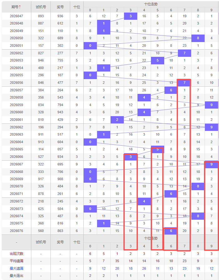 上期个位:3,近10期个位出号:5 6 8 4 1 5 4 7 6 3。最近10期大小变化分别:大大大小小大小大大小,奇偶变化分别:奇偶偶偶奇奇偶奇偶奇,质合变化分别:质合合合质质合质合质,根据近10期规律本期综上所述个位出号推荐5个号码:0 2 4 5 7。