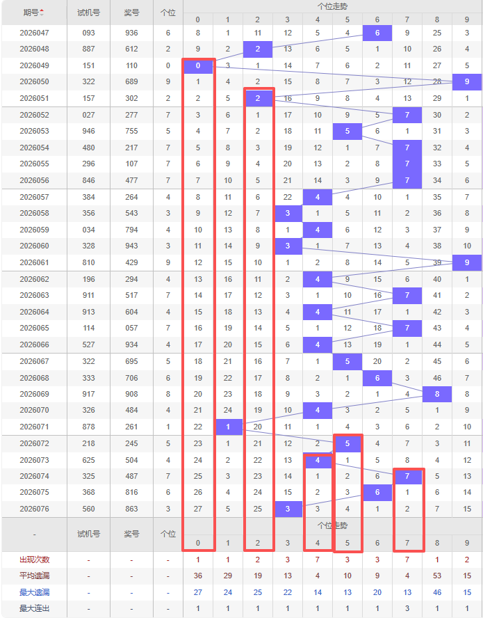 2026077期五码定位(百位、十位、个位):