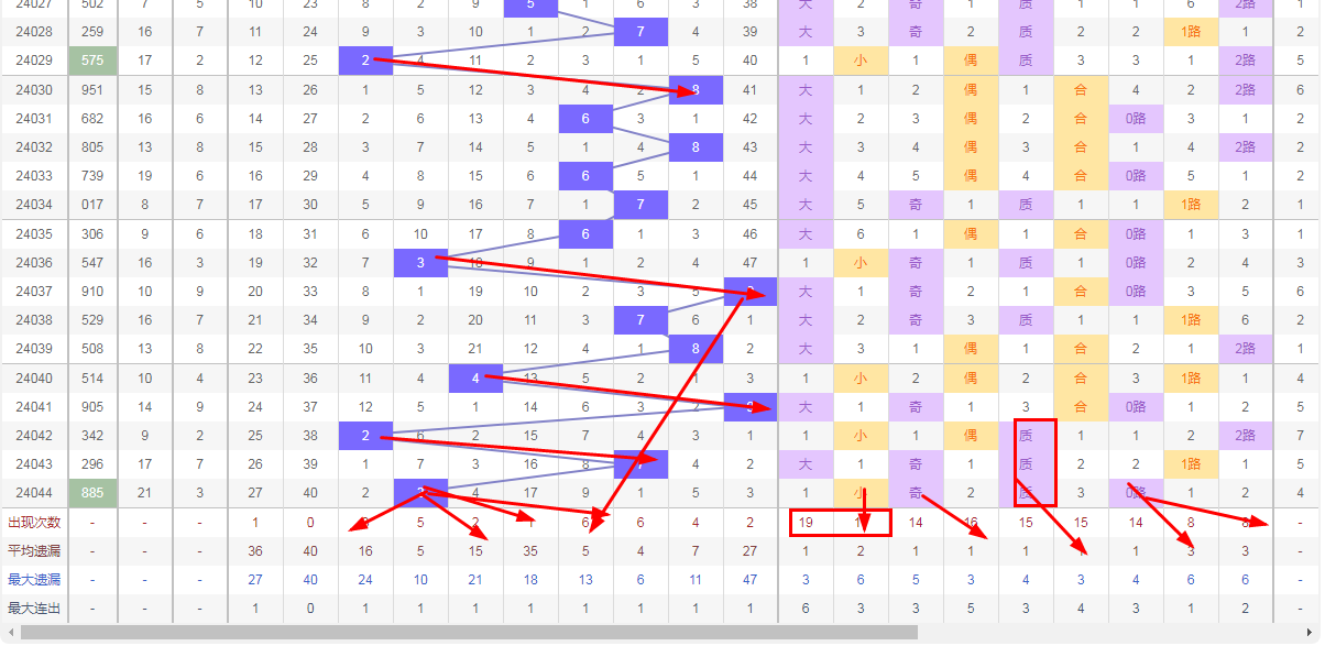 求均衡规律解释:求均衡是指如果某一个号码在一个区间长期不出现,总会在另一个期间进行回补。