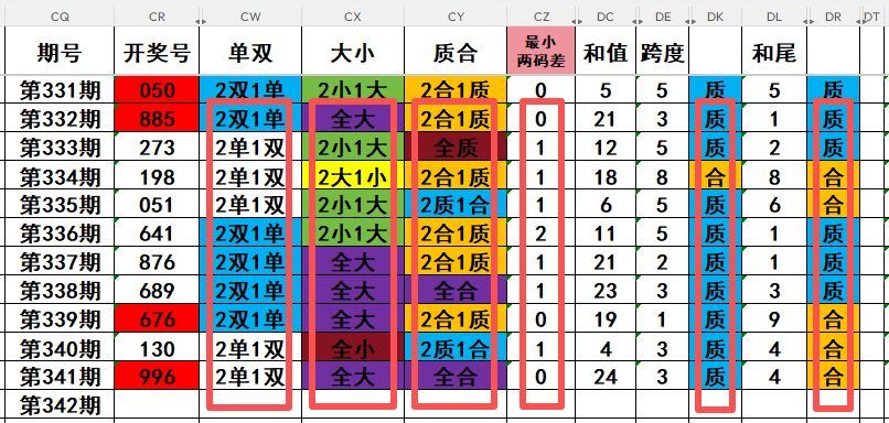 3,最近10天当中,两质一合开出2次,两合一质开出5次,全质数开出1次,全合数开出2次。近期需重点关注开奖号码两质一合的回补!