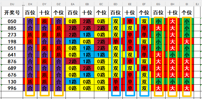 1,目前开奖号百位号码球11天当中,质数(12357)开出了3次,合数(04689)开出了8次,本期重点关注开奖号百位号码球质数的回补!