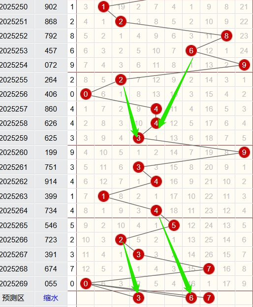 上期和尾为0,近5期和尾开出情况:第25265期开出5,属于奇数,2路号码,土属性;第25266期开出2,属于偶数,2路号码,火属性;第25267期开出3,属于奇数,0路号码,木属性;第25268期开出7,属于奇数,1路号码,火属性;第25269期开出0,属于偶数,0路号码,土属性;