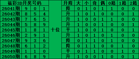 综上所述,福彩3D第2026051期号码推荐: