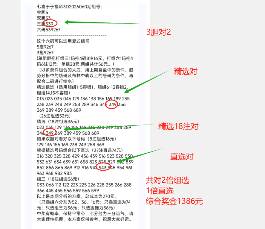 上期“会员专区”文章分析,精选18注对、直选对,对2倍组选1倍直选,综合奖金1386元。