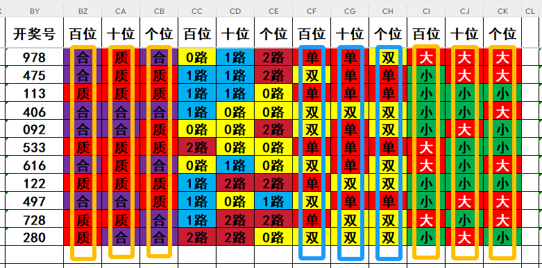 7,开奖号百位号码球11天当中,大号(56789)开出了4次,小号(01234)开出了7次,本期需注意开奖号百位号码球大号的回补!