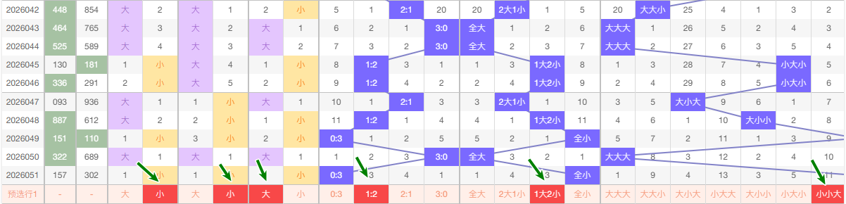 最近的5期当中个位大数出现的频次2  小数出现3 趋势平和 本期看好继续走大