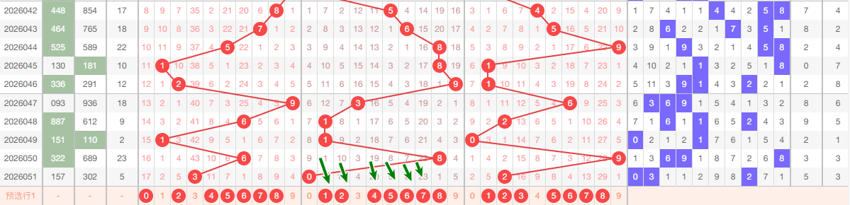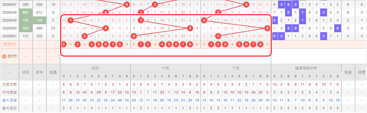 如图所示     上期百位开出3,本区与上期的跨度为3,本期重点关注 145,本期百位推荐关注:024567