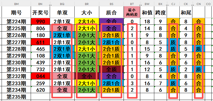 3,最近10天当中,两质一合开出2次,两合一质开出5次,全质数开出1次,全合数开出2次。近期需重点关注开奖号两质一合的回补!